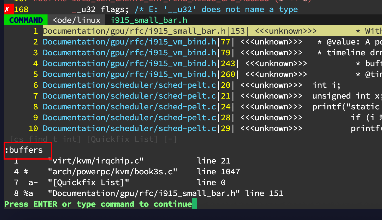找到后,会自动打开底部窗口显示查找结果,输入下面的命令后就可以通过hjkl键在结果中进行上下选择: