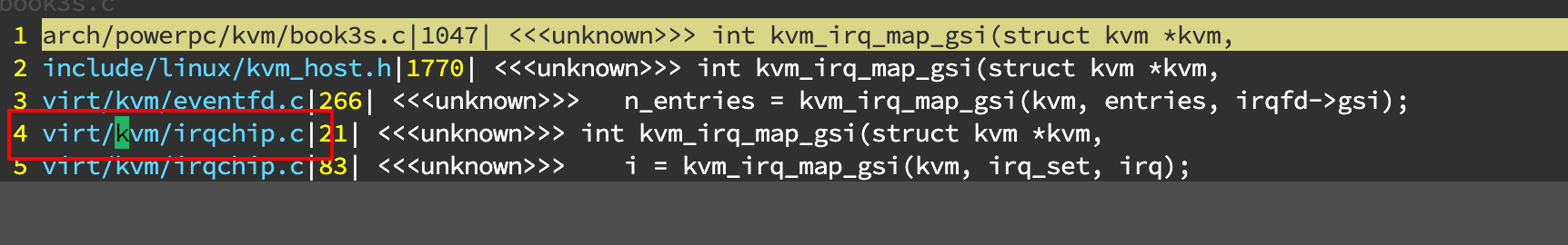 然后找到要跳转的文件的编号,比如上图中的irqchip.c的编号是1,然后输入: