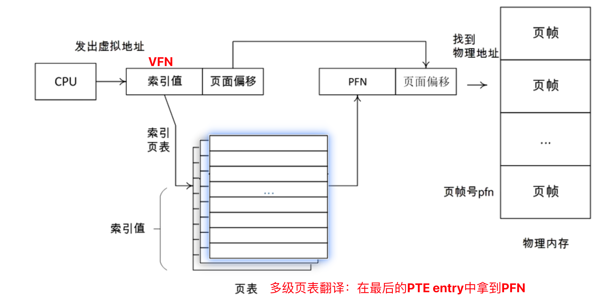 组合成物理地址:PFN + 偏移量
