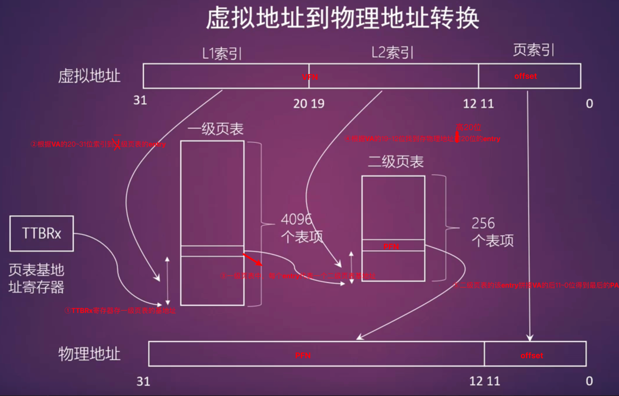 - 低12位:偏移量(0-4095)