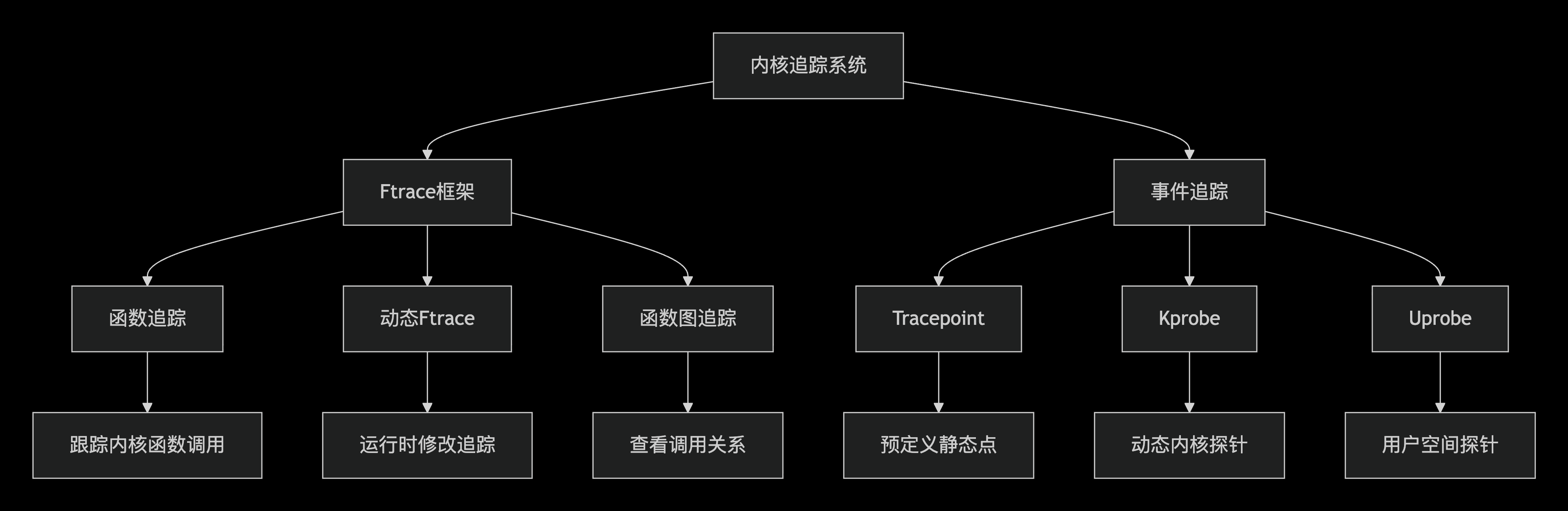 ftrace是最常用的工具,其中kprobe和tracepoint是其中的两个子工具。
