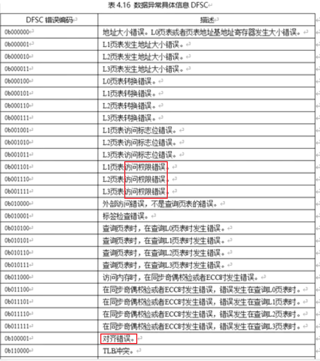 其中DFSC很重要,可以从DFSC的编码直接确认是由于缺页、权限异常还是其他原因导致的。